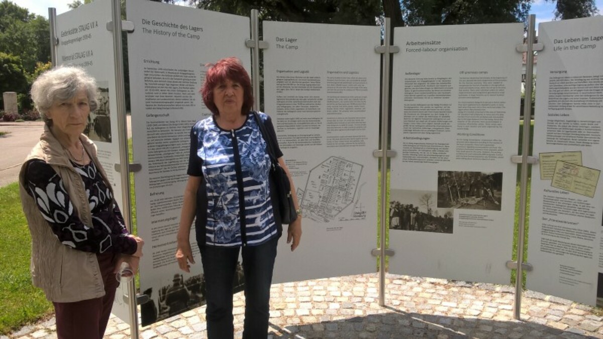 Участники встречи посетили еще одно мемориальное место – Gedenkplatz, где раньше непосредственно размещались бараки и постройки лагеря. Сейчас там можно увидеть информационный стенд, фонтан и памятный камень. Если пройти вверх по улице, то можно заметить во дворах спрятанные полуразрушенные бараки, а в жилых домах узнать их очертания. Там, в конце улицы, находится еще один стенд с подробной информацией о расположении лагеря, составе военнопленных и их деятельности.